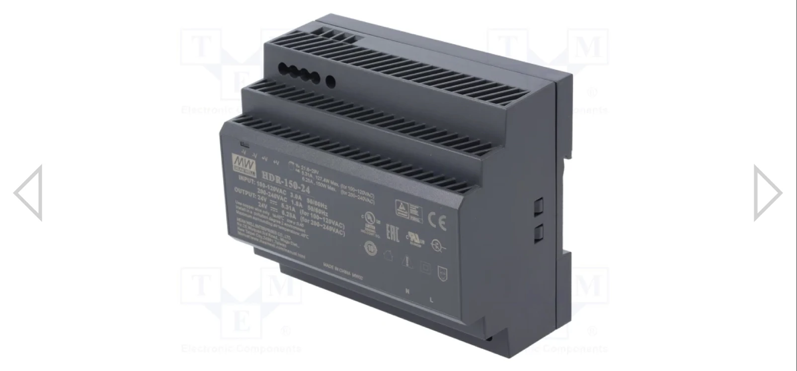 DIN-kiskolle asennettava hakkuriteholähde.